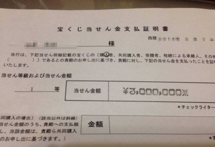 その後、高額当選になるので、銀行で受け取り、税金がかからないように高額当選の証明書を震えながら受け取りました!