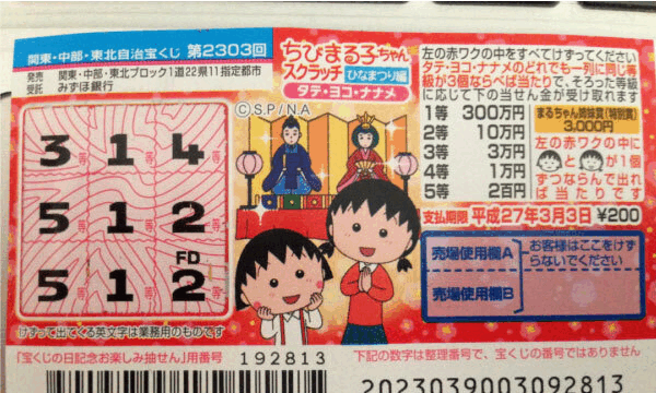 ジャンボ宝くじに比べたら可愛らしい金額なのですが・・・今回のスクラッチの1等当せん金額は、なんと300万円なのでした。