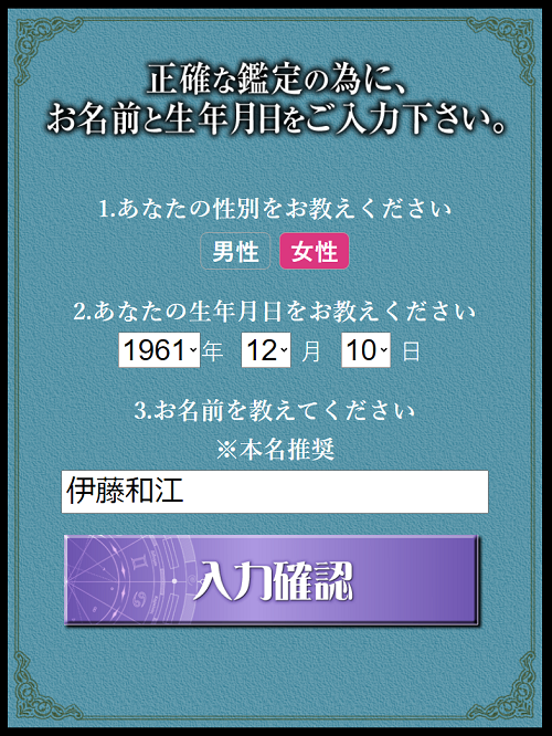 性別・生年月日・名前を送るだけです!